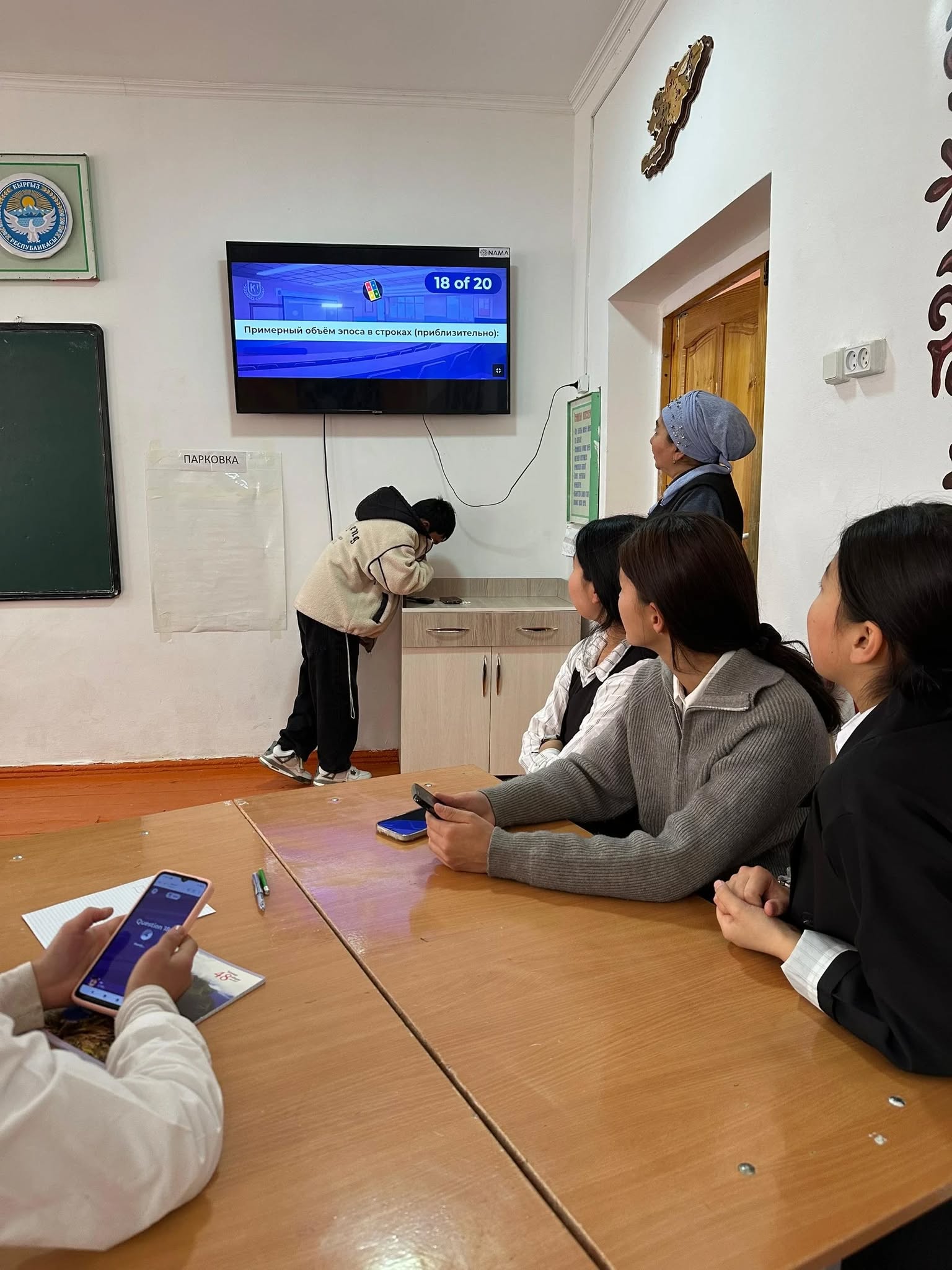 4-декабрь «Манас» эпосунун күнүнө карата, 9-10-класстар аралык интеллектуалдык таймаш,кахут оюну болду. ПоделитьсяКомментарии Комментариев не найдено. Новый комментарий