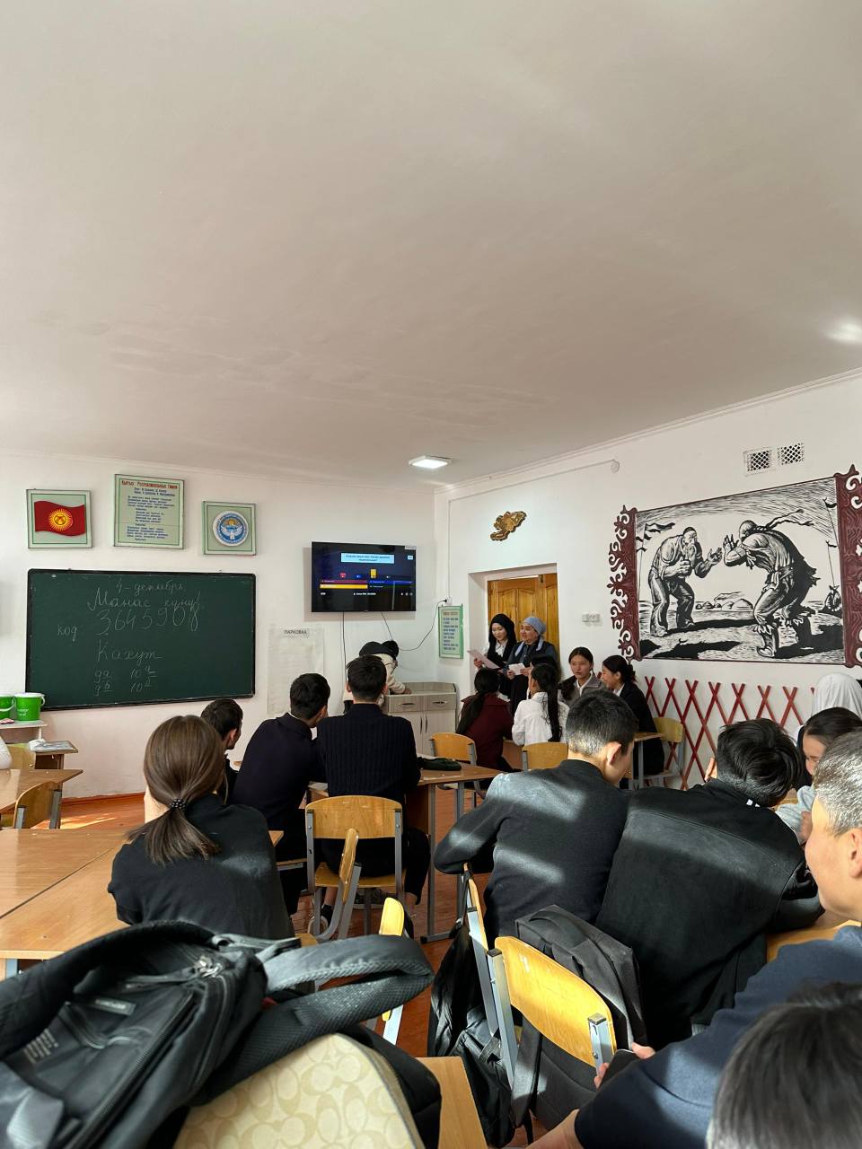 4-декабрь «Манас» эпосунун күнүнө карата, 9-10-класстар аралык интеллектуалдык таймаш, кахут оюну болду. ПоделитьсяКомментарии Комментариев не найдено. Новый комментарий